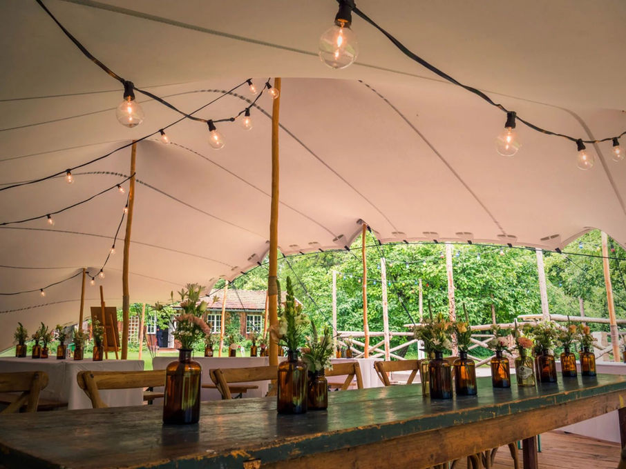 Compleet aangekleed met een prachtige tent, een groots podium in de buitenlucht en uitzicht op de skyline van Rotterdam.